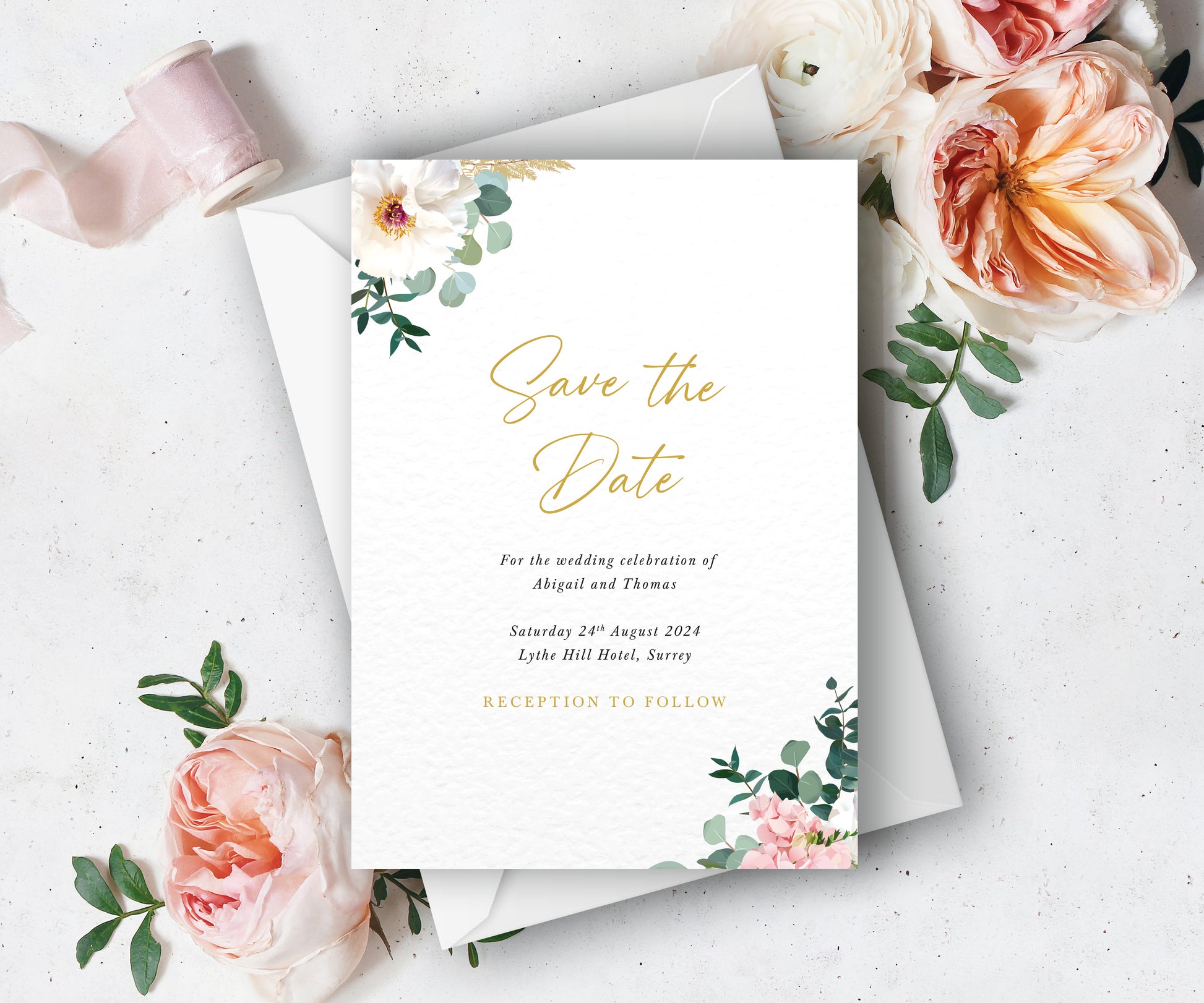 Our Save The Date cards are printed as standard on A6 (148mm x 105mm) card.