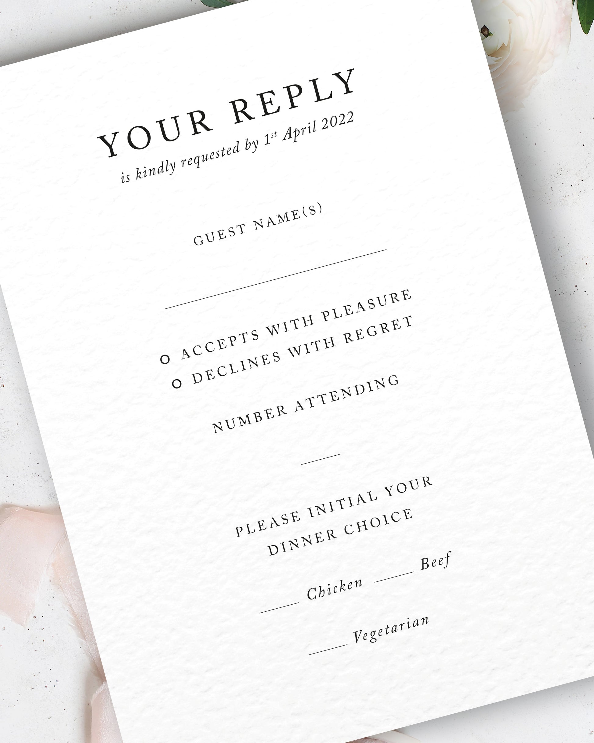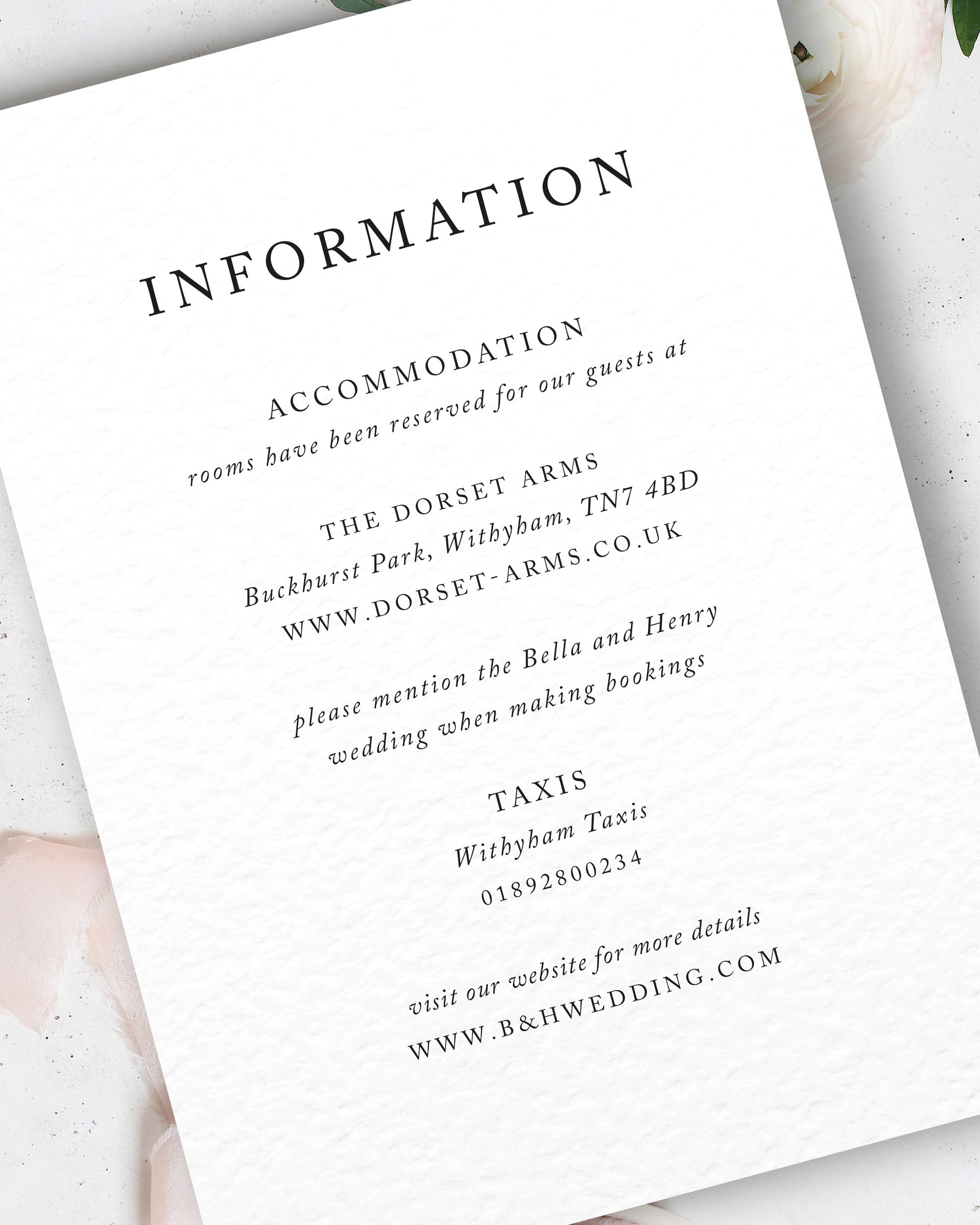 The text and formatting can be adapted to fit the theme of your wedding, and the cards are fully personalised to include all of the details your guests will need.